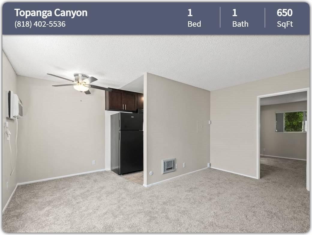 QR Code Link to This Post Topanga Canyon, located at 9035 Topanga Canyon Blvd West Hills, CA 91304. Description ........ Our West Hills apartments for rent offers a pool, great floor plans and the amenities that make the ideal home. Our Topanga Apartments offer a selection of studio, one, and two bedroom apartment for rent, specifically set to your standards. Our stylish West Hills apartment homes feature air conditioning, granite countertops, upgraded appliances, and much more. Pay $1000 first month's rent and $1000 security deposit when you apply to select apartments! Offer valid on approved credit only Bedrooms ........... 1 Bathrooms ......... 1 Sq Footage ......... 650 sq ft Unit Price ........... $1995/Month Lease Term ........ 12-Month Amenity List ...... ➢ Accepts Credit Card Payments ➢ Controlled Access ➢ Grill ➢ On-line Maintenance Request ➢ On-Line Payments ➢ Onsite Maintenance ➢ Onsite Management ➢ Pool ➢ Shopping Nearby ➢ Yard ➢ 24/7 On-Site Laundry Room ➢ After Hours Emergency Maintenance ➢ Assigned Tandem Parking ➢ Att Uverse Ready ➢ BBQ/Picnic Area ➢ DirecTV Wired ➢ Garden Community ➢ Gated ➢ Laundry Service Unit Features ..... ➢ Carpet ➢ Dishwasher ➢ Extra Storage ➢ Fireplace ➢ Garbage Disposal ➢ Microwave ➢ Range ➢ Stove ➢ Upgraded Appliances ➢ Walk In Closet(s) ➢ Dishwasher* (Select Units) ➢ Hardwood Floors* (Select Units) ➢ Microwave*(Select Units) ➢ Mirrored Closet Doors ➢ Pantry* (Select Units) ➢ Private Entry* (Select Units) ➢ Time Warner Cable Ready ➢ Upgraded Cabinets & Granite Countertops* ➢ Walk-In Closets ➢ Yard Our Pet Policy ... We allow up to 2 pets total. All pets are subject to review and the management's final approval. If the pet is approved, we will require a deposit of $400 per pet and a monthly pet rent of $40 per pet. We also require a photograph of the pet, current vaccination records and proof of a pet license, if required by the city or county. Pets must be spayed or neutered. Leasing Hours ... Mon - Fri: 8:00 AM - 4:30 PM Call our Office ... at show contact info to schedule a private tour today. Our Location ..... 9035 Topanga Canyon Blvd West Hills, CA 91304 Facebook: https://www.facebook.com/TopangaCanyonApartments/ Twitter: @TopangaCanApts Website: https://www.topangaapts.com/?rcstdid=MzM=-dkCsfkCKtXI= EQUAL HOUSING OPPORTUNITY 09B65555EFDF43